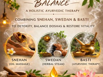 A holistic blend of Basti (Ayurvedic enema therapy), Snehan, and Swedana — this therapy detoxifies the body, relieves stiffness, improves circulation, and restores inner balance.