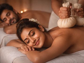 Enjoy Abhyanga massage, Potli, Kansa vati, Udvartana, and Steam Therapy—perfect to detox work stress, restore wellness, and rejuvenate together
